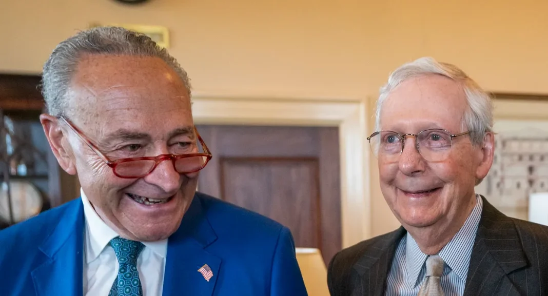 Лідери демократів і республіканців у Сенаті США Чак Шумер та Мітч Макконнелл (Фото: EPA/SHAWN THEW) Американський канал CNN з посиланням на співрозмовників, які знайомі з питанням, пише, що в Сенаті США дійшли згоди щодо безпеки кордону з Мексикою, яка передбачає продовження допомоги Україні.