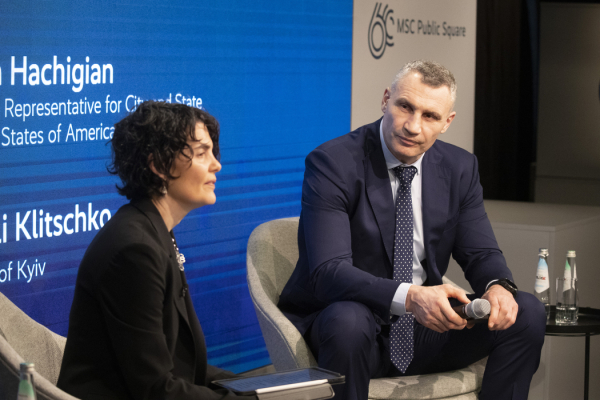 Мер Києва та голова Асоціації міст України Віталій Кличко на Мюнхенській конференції з безпеки разом зі спецпредставником Держдепу США Ніною Хачіган взяв участь у дискусії «Роль субнаціональної дипломатії у міжнародній безпеці». Говорили про роль місцевого самоврядування в подоланні викликів, що постають перед державами в сучасному світі. Про це мер Києва Віталій Кличко повідомив у своєму Telegram-каналі.
