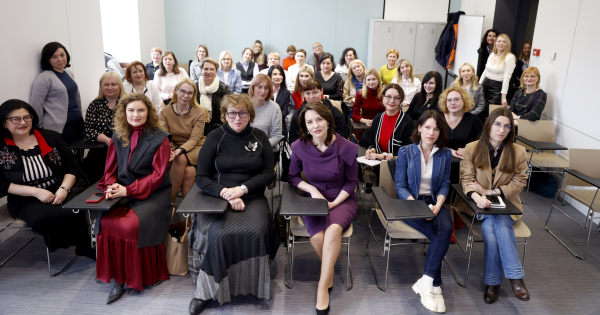 «Із початком повномасштабної війни жінки взяли на себе нові ролі та ще більше відповідальності. Крім роботи, жінки продовжують піклуватися про свої сім’ї, волонтерити та допомагати тим, хто цього потребує. Сьогодні під час лекції ми обговорили важливі питання людського капіталу, демографічні виклики, повернення наших людей з-за кордону, працевлаштування та гендерні відмінності на ринку праці. Дякую пані Еллі за змістовну лекцію, що не лише надала ґрунтовний аналіз актуальних викликів, а і вмотивувала на зміни», – зазначила Марина Хонда.