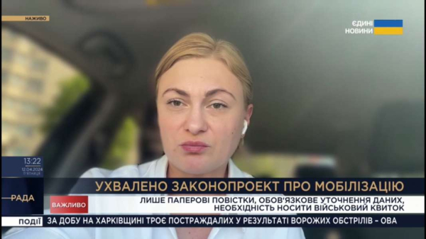 Верховна Рада України напередодні прийняла в цілому мобілізаційний Закон. Він має набути чинності у другій половині травня, через місяць з часу його публікації, яка настає одразу після підписання Президентом, — про це зазначила народна депутатка, заступниця Голови Комітету з питань гуманітарної та інформаційної політики Євгенія Кравчук у ефірі телемарафону «Єдині новини».