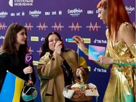 Враховуючи, що офіційна церемонія відкриття припала на Великдень, учасниці з України пройшлися по доріжці з пасками, яйцями та великоднім кошиком. Більш того, Alyona Alyona та Jerry Heil навчили ведучу церемонії, що треба робити з крашеними яйцями.
