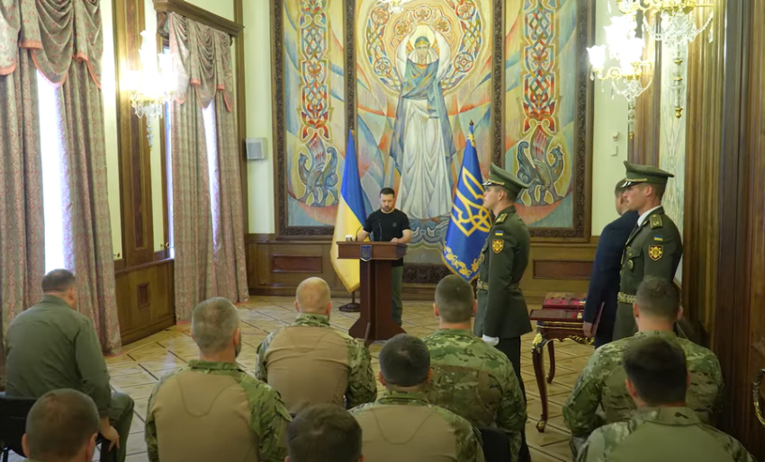 «Понад 30 нафтопереробних заводів, терміналів і нафтосховищ терористичної держави зазнали ударів», – сказав Зеленський офіцерам Центру спеціальних операцій «А» Служби безпеки України (СБУ), які брали участь в атаках.