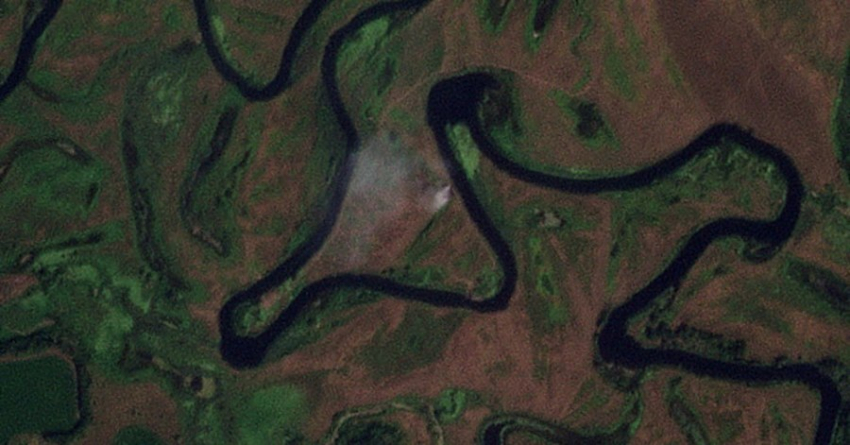 Дим у районі, де було зруйновано понтонний міст через річку Сейм, недалеко від Глушково, Курська область, Росія, 19 серпня 2024 року. (Супутниковий знімок 2024 Planet Labs Inc)