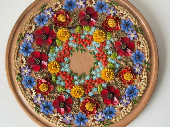 Український хендмейд вражає красою та різноманітністю жанрів. Серед виробів — текстильні ляльки, керамічний посуд, прикраси з бісеру… Майстриня Наталія Тесленко, яка живе в місті Знам'янці на Кіровоградщині, створює картини з насіння. Її роботи незвичайні, тому одразу привертають увагу. В інтерв’ю «ФАКТАМ» співрозмовниця розповіла про особливості техніки, в якій працює. — Я створюю картини-обереги з насіння, і це захопливий процес, — розповідає Наталія Тесленко. — Через природні символічні елементи передаю свої почуття, щирі побажання, віру в досягнення бажаного й у глибинні зміни на краще. Картини Наталії Тесленко, за її словами, зберігають дихання природи — Гарно! — Ось картина-оберіг «Магія з любов’ю». Чорнобривці — символ, що уособлює рідну землю й тепло батьківської оселі. Червоні нижні пелюстки із жовтим обрамленням виконані з лусок соснової шишки, а яскраво-жовта середина — з нуту, обклеєного насінням перцю. Об’ємна структура насіння надає серцевині особливої виразності. Ця картина ніби наповнена теплом щедрих сонячних променів. Працюючи над нею, я часто замислювалася над тим, що створення оберегу — це не просто робота руками, а розмова душі зі світом. Відтворюючи чорнобривці, хотіла передати їх природну енергію спокою, силу життя та тихе нагадування про нерозривний зв’язок із рідною землею. Картина-оберіг «Магія з любов’ю» яскрава та гарна — З чого створені маки? — Їхні червоні пелюстки теж виконано з лусок соснової шишки. У серцевині — голівка плоду маку, обсипана чорним насінням цибулі, що створює контраст із червоними пелюстками та підкреслює виразність квітки. Мак символізує красу та молодість. Непомітно між маками та чорнобривцями вплелися у вінок деревій та м’ята. Вони є символами захисту. Незабудки випромінюють спокій, щирість, вірність і теплі почуття. Їхні пелюстки з насіння перцю ніжні й виразні, а жовті серединки з пшона — наче маленькі сонячні промінчики, що додають картині затишку. Між незабудками, мов захисна стіна, пробивається цвіт хмелю, викладений з насіння перцю. Він символізує невичерпну життєву силу й розвиток. Попри свою непомітність, саме ця квітка потребувала найбільше часу й уваги. Потрібно було дібрати зерна однакового розміру та структури. — А з чого ж виготовлені ягоди калини? — Калина — невід’ємна частина дівочого вінка. За задумом, її ягоди мають привертати увагу яскравим блиском. Вони створені з насіння гороху й ніби сяють дрібними жаринками, що ввібрали в себе сонце й тепло літа. Насіння огірка, щільно викладене одне біля одного, утворило пелюстки безсмертника, який символізує здоров’я. Барвінок, що є символом кохання, створений з насіння кукурудзи, ромашки — з насіння дині та квасолі, а волошки — з насіння гарбуза й цибулі. Усі квіти мають природний вигляд, адже їхні зерна зберігають у собі відчуття життя та народження нового, а отже, випромінюють тепло й життєву енергію. Завершує композицію вінок з колосся, викладеного з пшеничного насіння. Він символізує початок нового, добробут, процвітання, достаток, духовну силу та мудрість. Коли зернина до зернини лягали на полотно, утворюючи колосок за колоском, я згадала притчу про два колоски — гордий і схилений. Гордий запитав, чому інший нахилився. Схилений відповів, що, хоч і сповнений зерна, все ж схиляється, виявляючи повагу 