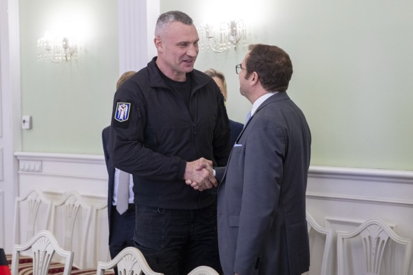 Мер Києва Віталій Кличко зустрівся у столичній мерії з Державним міністром МЗС Німеччини Флоріаном Ганом та делегацією представників бізнесу, які прибули разом із ним. Про це Віталій Кличко повідомив у своєму Telegram-каналі.